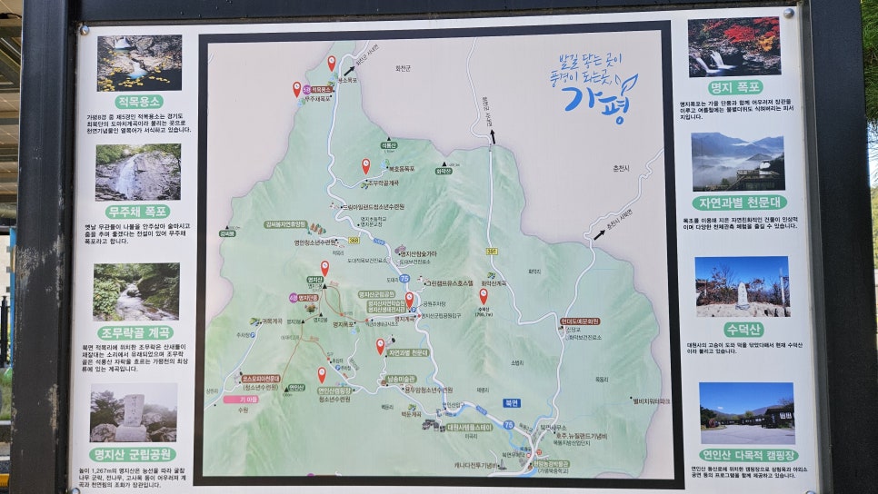 주변에는 계곡, 유원지, 명지산 국립공원, 캠핑장, 글램핑장, 리조트, 펜션 등이 있습니다.
